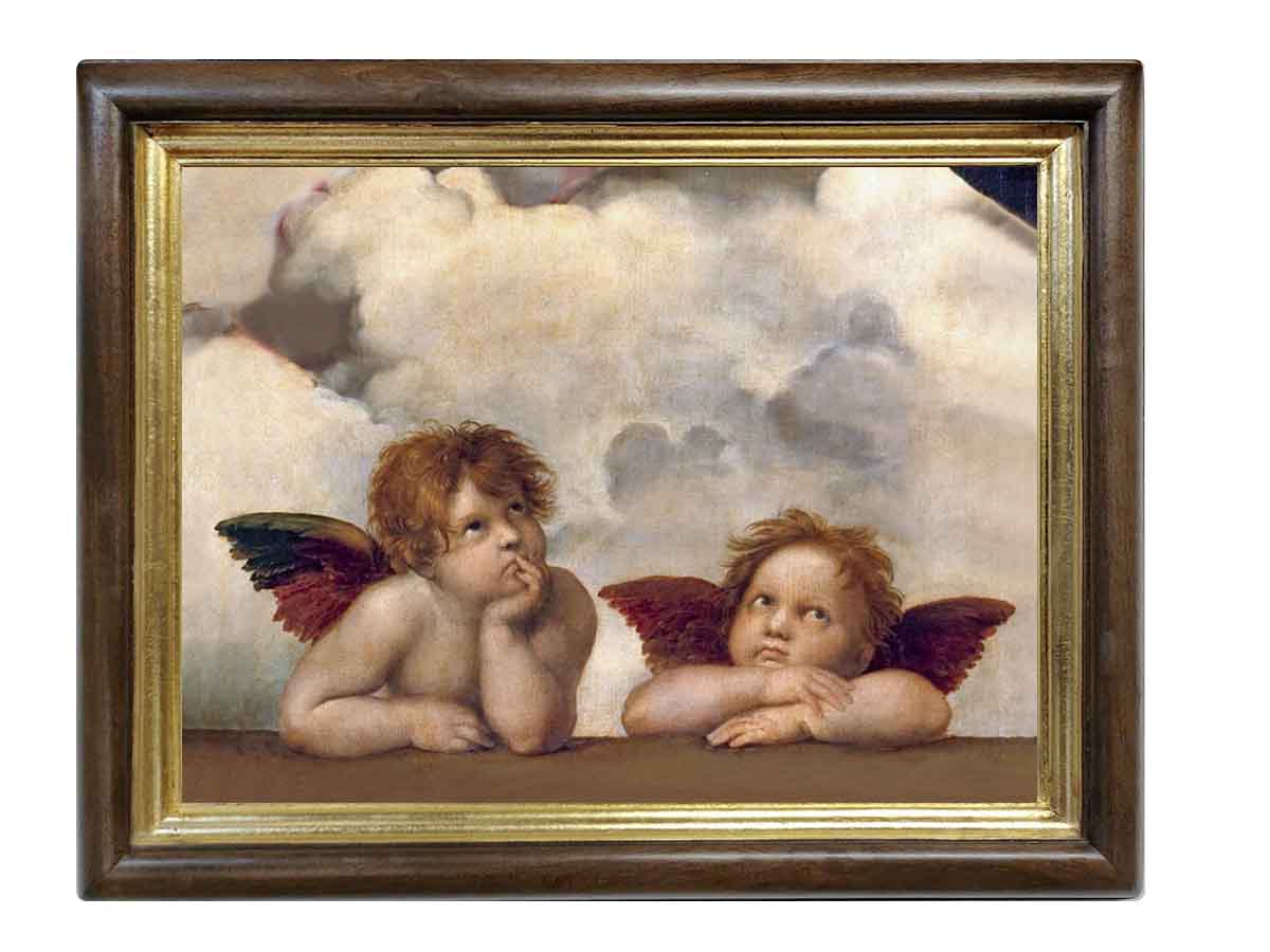 Картина выполнена на холсте в раме из натурального дерева, ручной работы. В оформлении использовано сусальное золото.