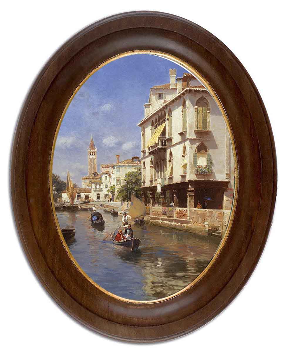 Картина выполнена на холсте c эффектом живописи, в раме из натурального дерева ручной работы, в оформлении использовано сусальное золото.