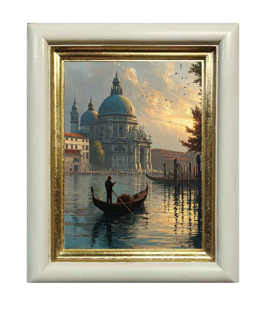 Картина выполнена на холсте, с эффектом живописи, в раме из натурального дерева ручной работы, в оформлении использовано сусальное золото.