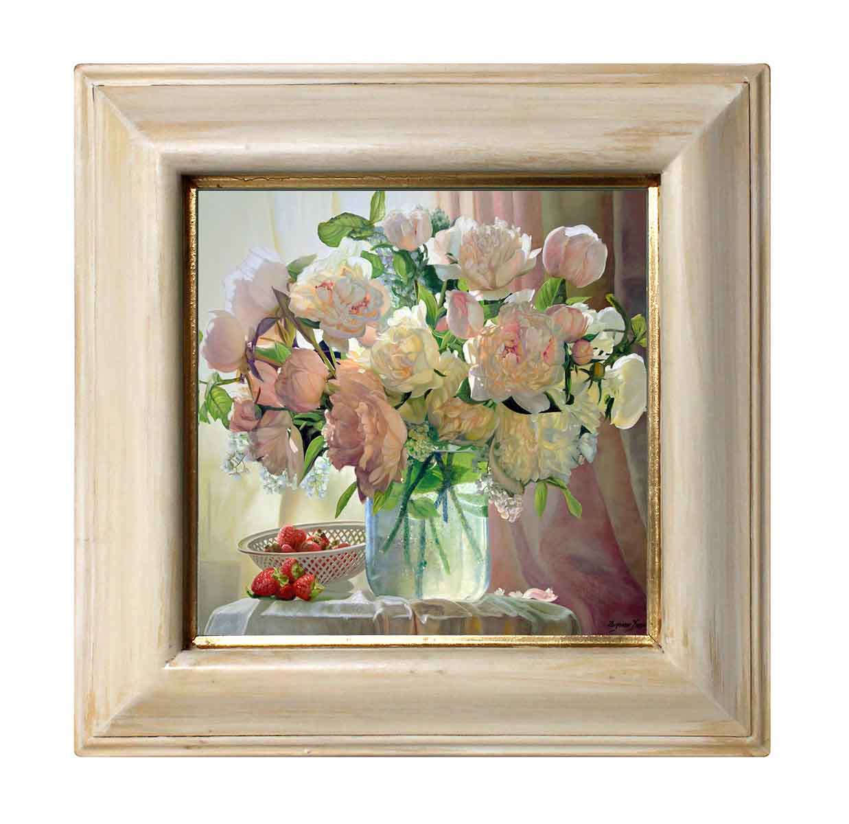 Картина выполнена в раме из натурального дерева ручной работы. В оформлении использовано сусальное золото. Изображение с эффектом живописи.