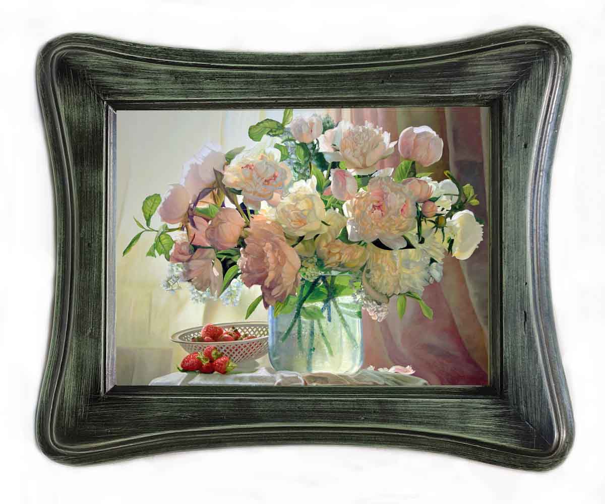 Картина выполнена на холсте, с эффектом живописи, в раме их натурального дерева ручной работы.