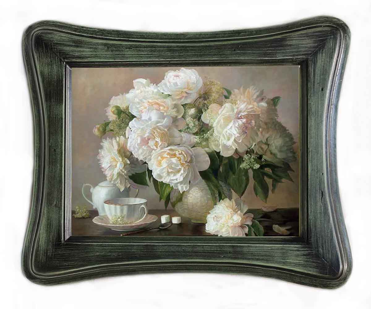 Картина выполнена на холсте, с эффектом живописи, в раме их натурального дерева ручной работы.