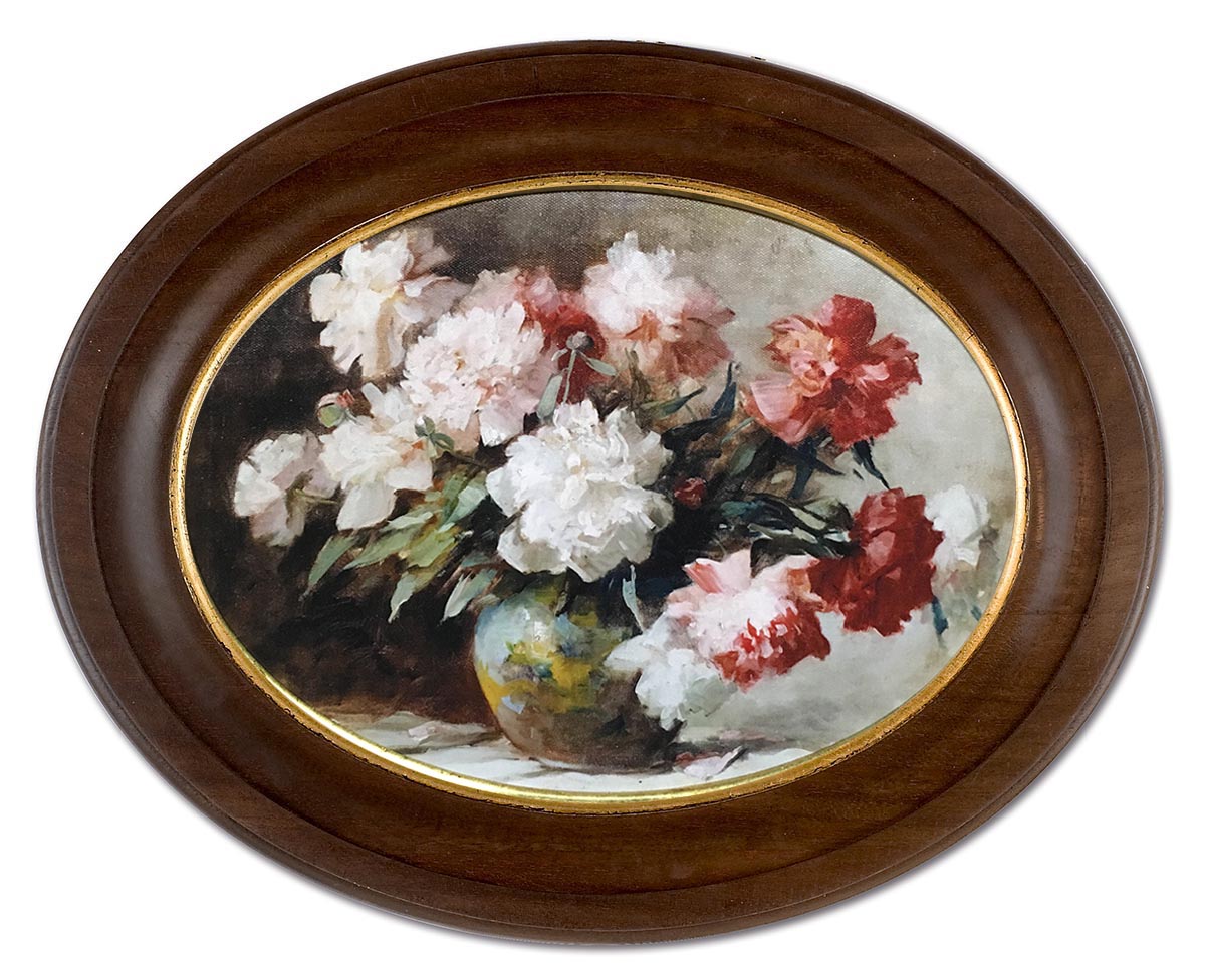 Картина выполнена с эффектом живописи, в раме из натурального дерева ручной работы, в оформлении использовано сусальное золото.