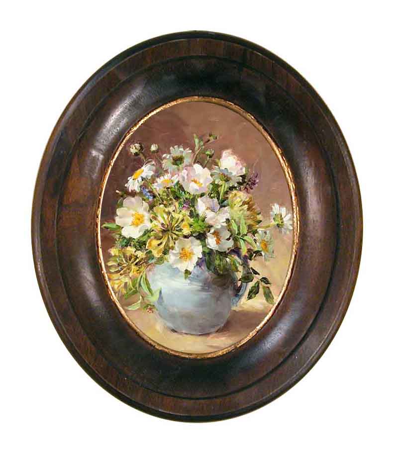 Репродукция картины выполнена на холсте с эффектом живописи, в раме из натурального дерева ручной работы. В оформлении использовано сусальное золото.