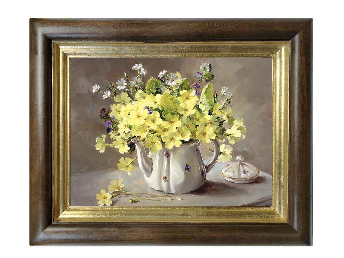 Картина выполнена на холсте, с эффектом живописи, в раме из натурального дерева ручной работы, в оформлении использовано сусальное золото.