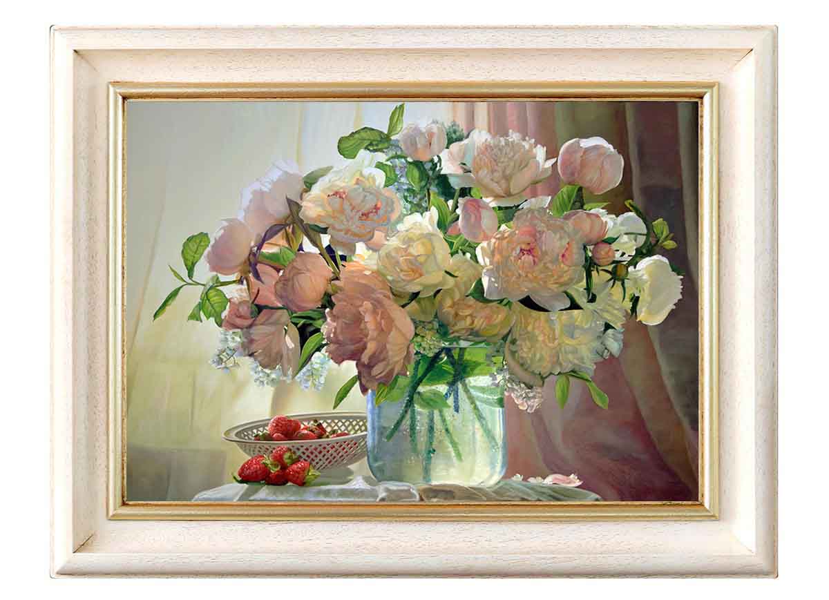 Картина выполнена холсте с эффектом живописи в раме из натурального дерева ручной работы. В оформлении использовано сусальное золото.