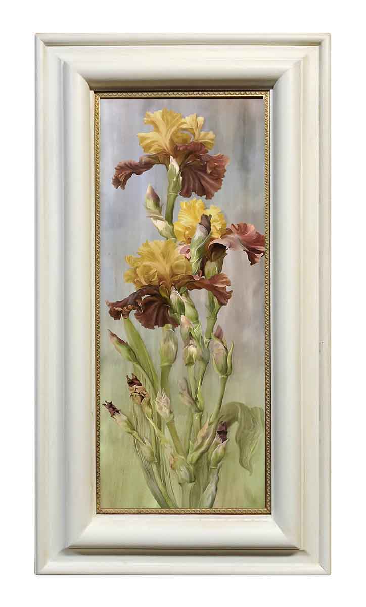 Картина выполнена на холсте с эффектом живописи, в раме из натурального дерева ручной работы, в оформлении использовано сусальное золото.