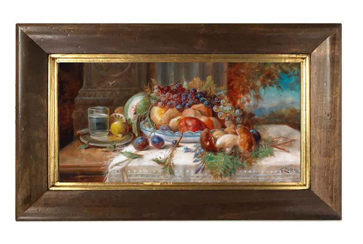 Картина выполнена на холсте с эффектом живописи, в раме из натурального дерева ручной работы, в оформлении использовано сусальное золото.
