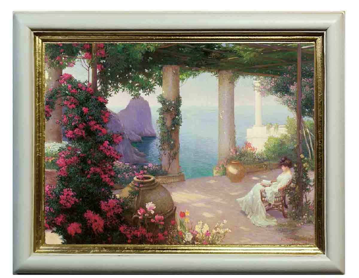 Картина выполнена с эффектом живописи, в раме из натурального дерева, ручной работы. В оформлении использовано сусальное золото.