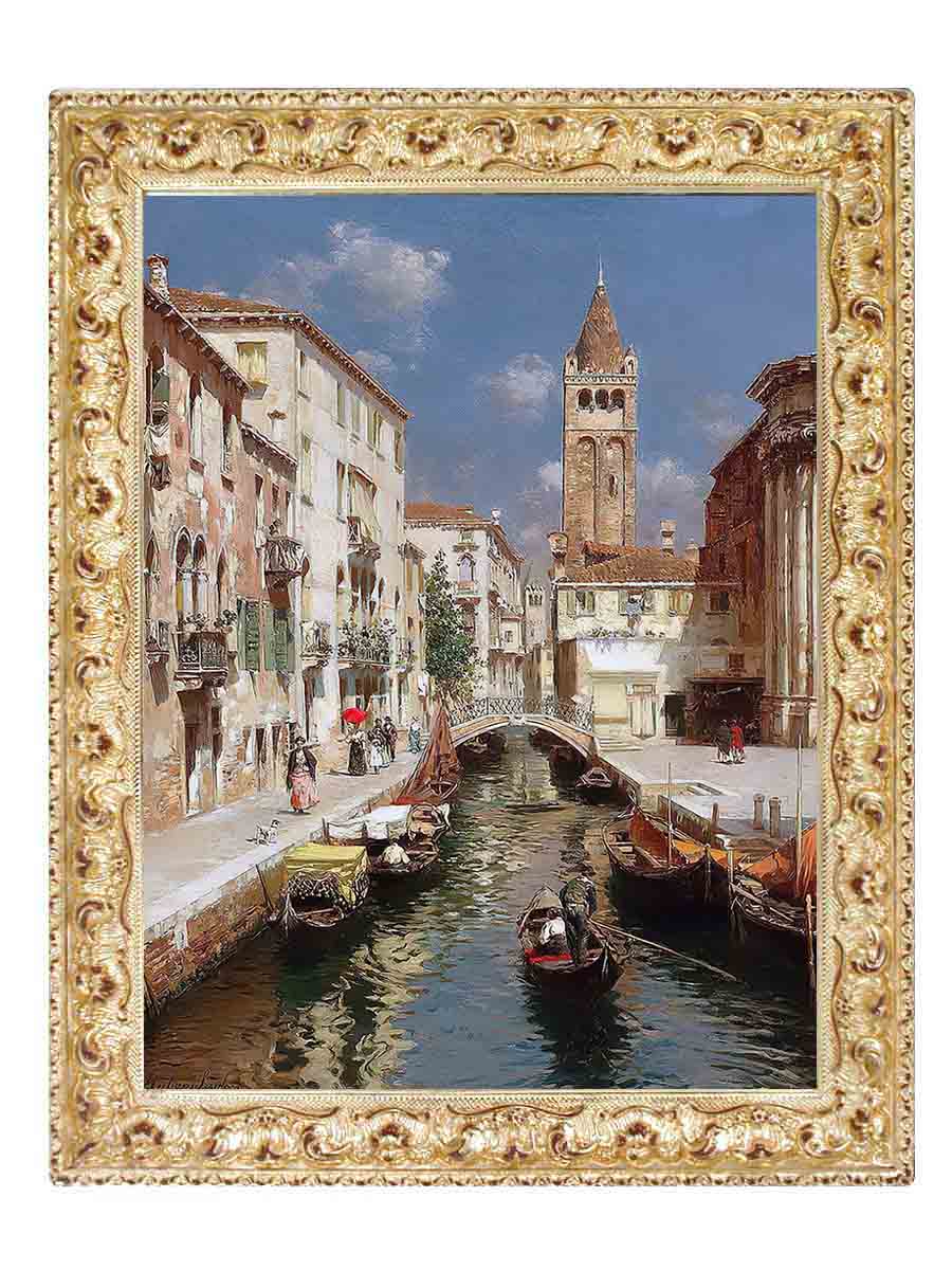 Картина выполнена на холсте, c эффектом живописи, в раме из натурального дерева ручной работы. В оформлении использовано сусальное золото.
