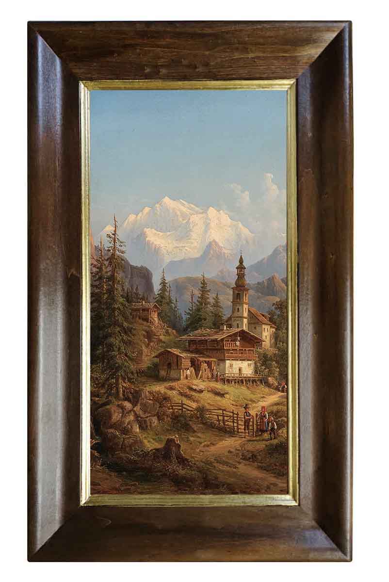 Картина выполнена на холсте, с эффектом живописи, в раме из натурального дерева ручной работы. В оформлении использовано сусальное золото.