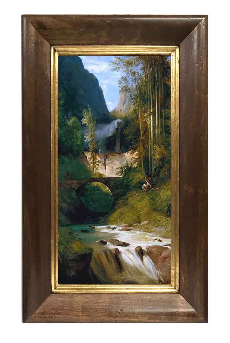 Картина выполнена на холсте с эффектом живописи, в раме из натурального дерева ручной работы, в оформлении использовано сусальное золото.