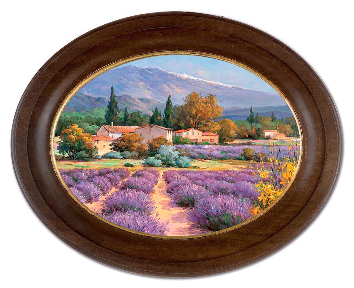 Картина выполнена с эффектом живописи, в раме из натурального дерева ручной работы, в оформлении использовано сусальное золото.