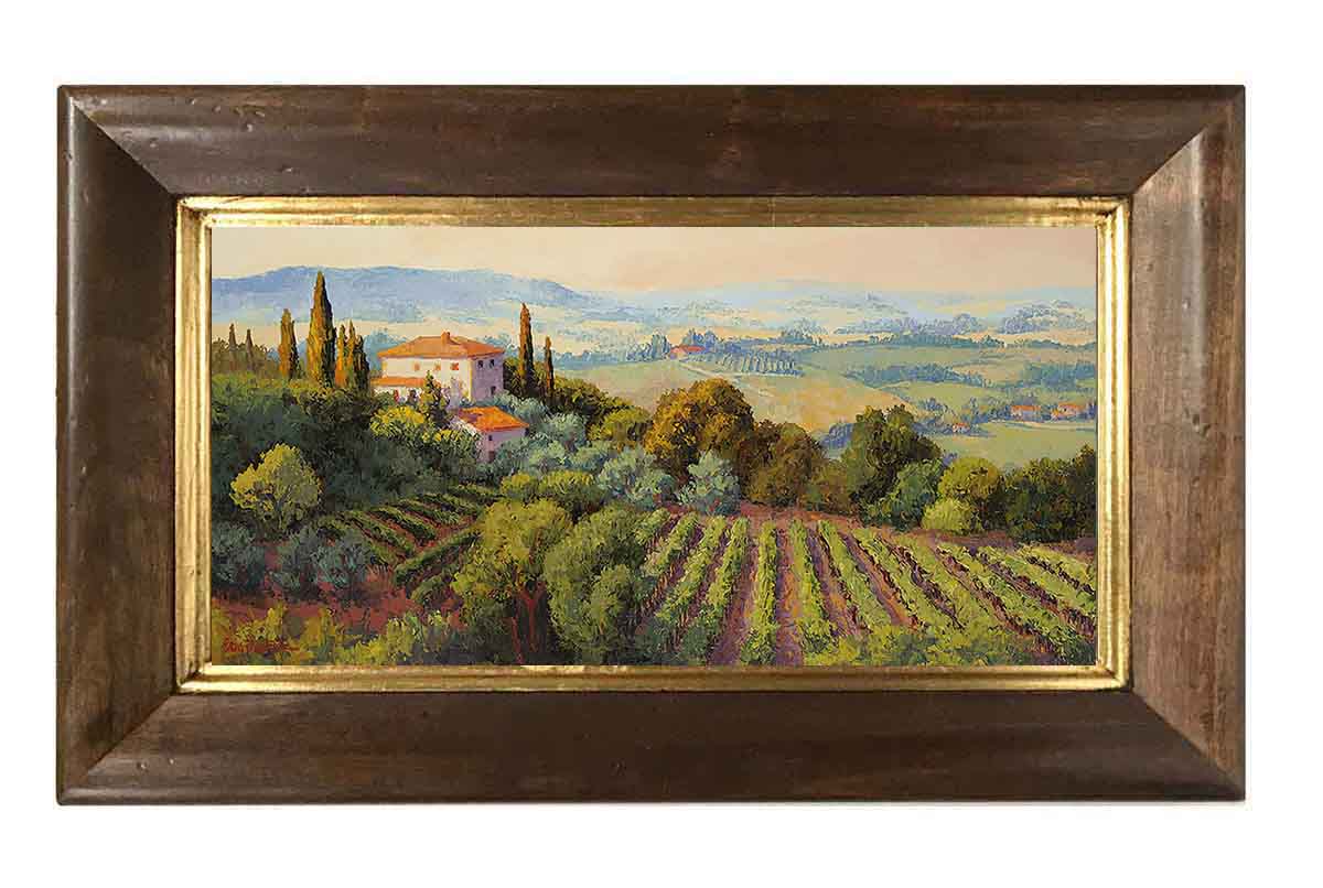 Картина выполнена на холсте с эффектом живописи, в раме из натурального дерева ручной работы, в оформлении использовано сусальное золото.