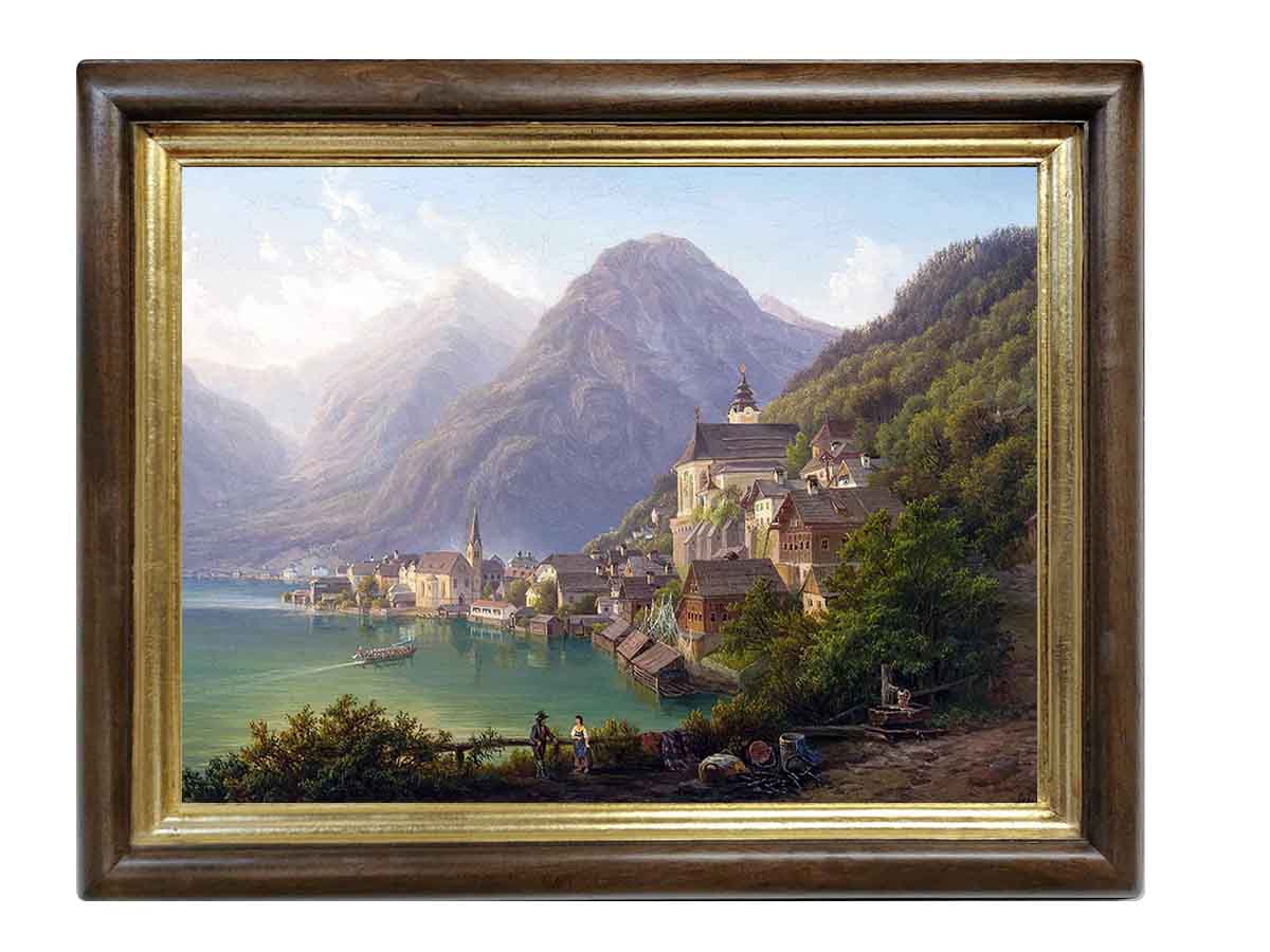 Картина выполнена на холсте, с эффектом живописи, в раме из натурального дерева ручной работы, в оформлении использовано сусальное золото.