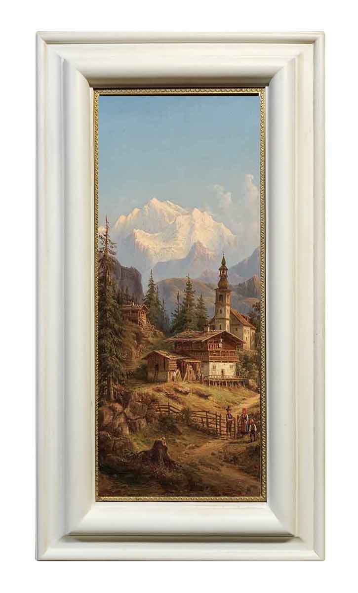Картина выполнена на холсте с эффектом живописи, в раме из натурального дерева ручной работы, в оформлении использовано сусальное золото.