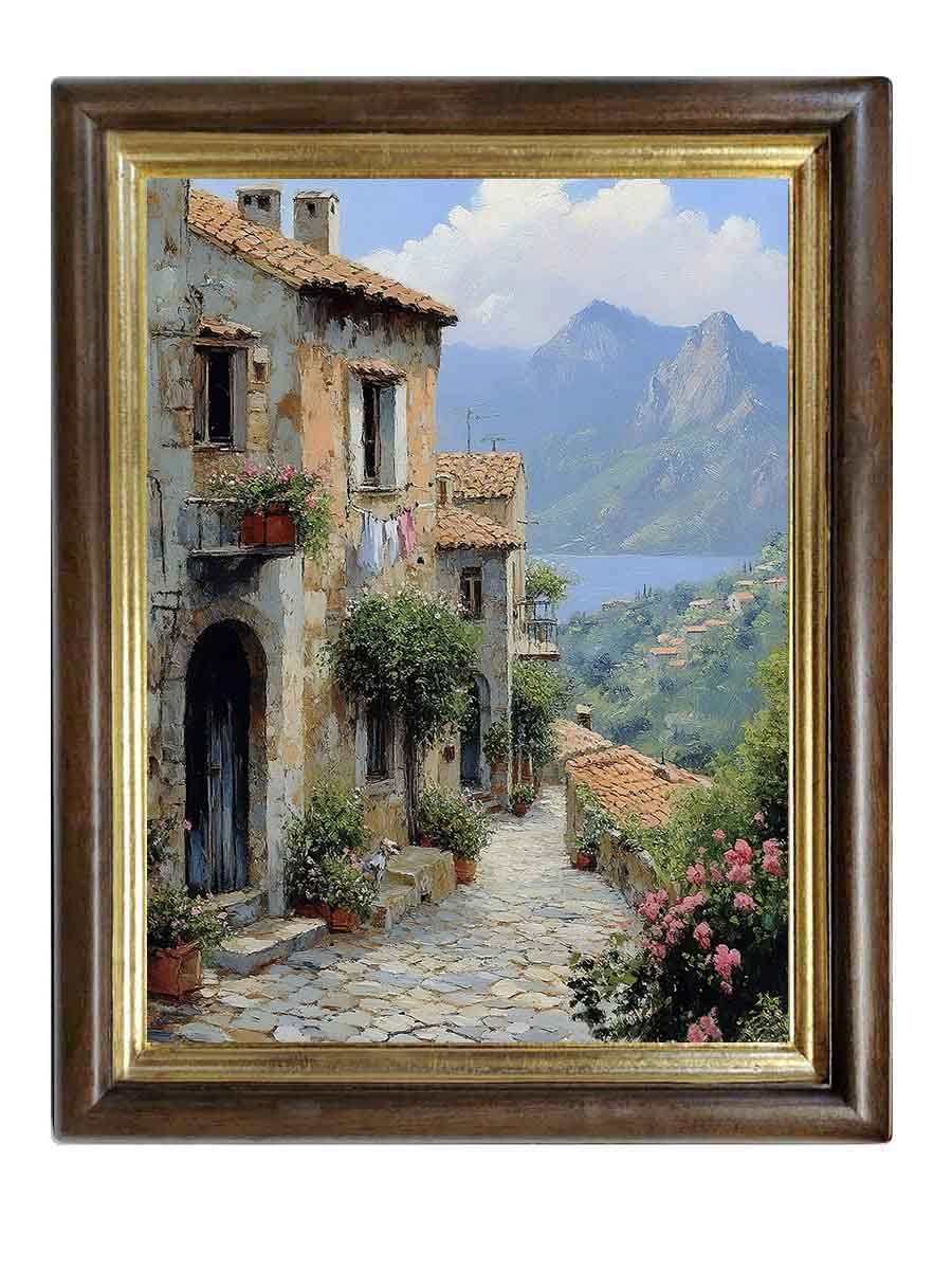 Картина выполнена на холсте в раме из натурального дерева, ручной работы. В оформлении использовано сусальное золото.